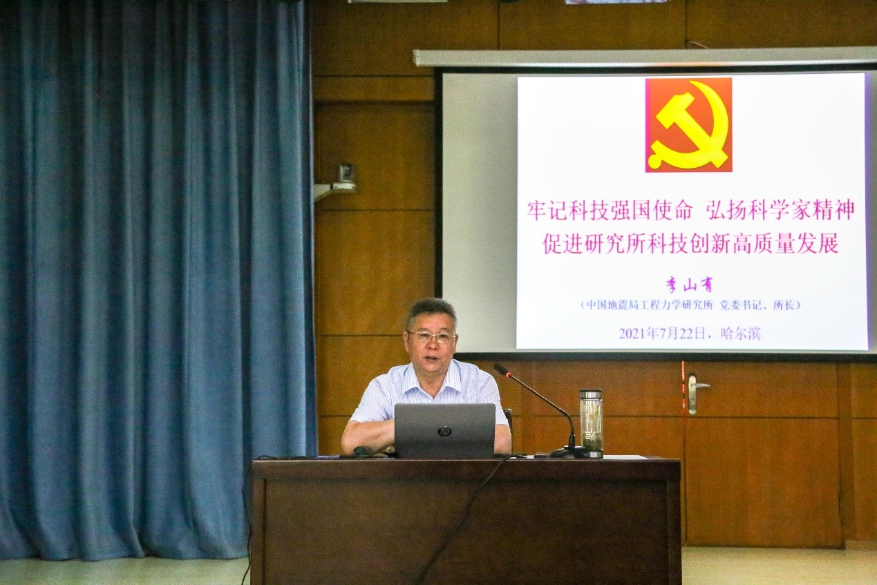 發(fā)布時間: 2021-07-27 點擊數(shù)量:37167月22日,工力所舉行黨史學(xué)習(xí)教育專題黨課報告會。工力所黨委書記、所長李山有同志以“牢記科技強(qiáng)國使命 弘揚科學(xué)家精神 促進(jìn)研究所科技創(chuàng)新高質(zhì)量發(fā)展”為主題向全所干部職工和學(xué)生黨員講授黨史學(xué)習(xí)教育專題黨課。
