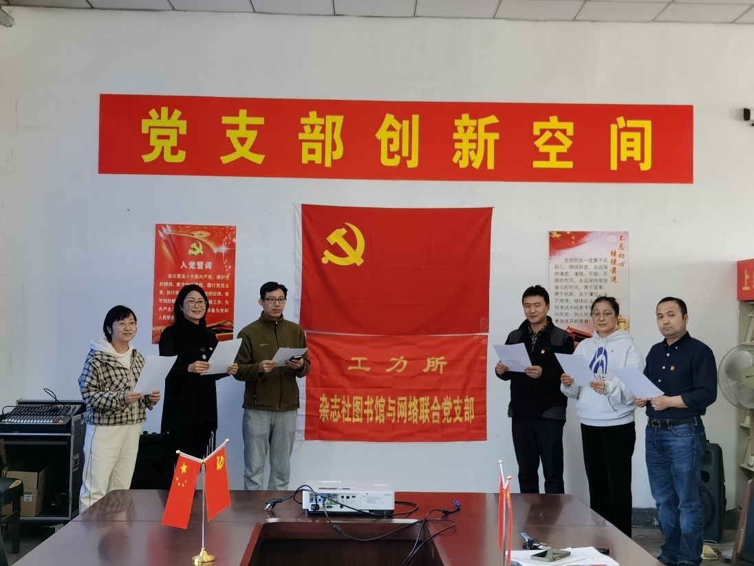2021年4月9日,雜志社圖書館黨支部全體黨員懷著無比崇敬的心情在黨支部創新空間舉行以“重溫入黨誓詞、革命英烈詩詞”為主題的詩歌朗讀會。首先,黨支部書記帶領大家重溫入黨誓詞。隨后,黨員同志們飽含深情地朗誦了《滿江紅》《西江月》《真理詩》《我的自白書》《革命烈士詩歌》《把牢底座穿》,他們或激昂慷慨,或輕柔低吟,懷著滿腔愛國愛黨熱忱朗誦了一首首經典革命詩歌。整個朗誦會肅然有序,激情飛揚。