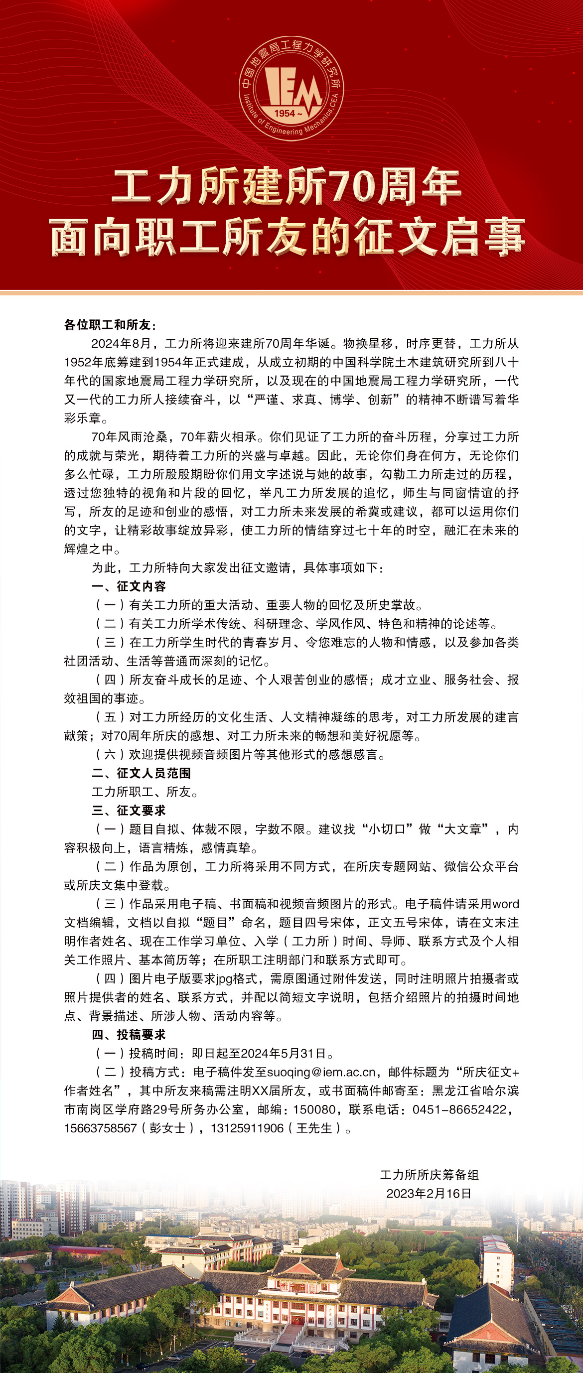 工力所建所70周年面向社會各界朋友的征文啟事