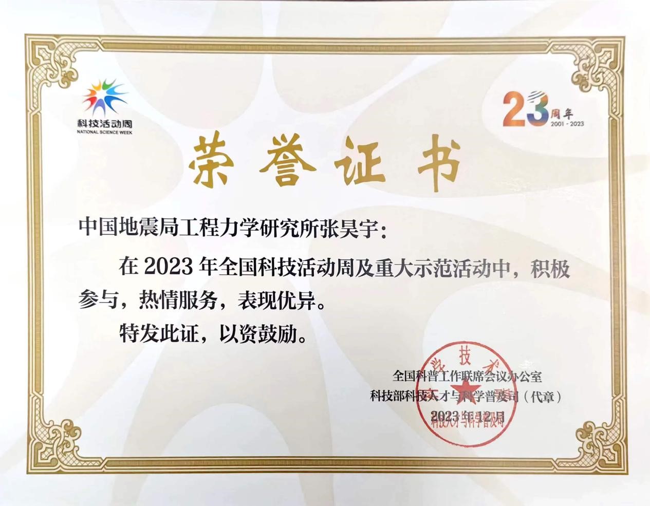 我所在2023年全國科技活動周工作中受表彰