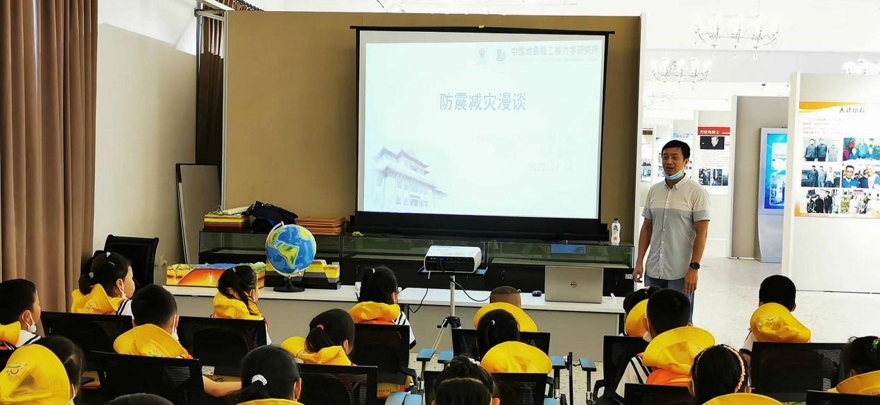 發布時間: 2022-07-07 點擊數量:3880為更好的宣傳防震減災知識,從小培養幼兒防震減災意識,蘭寧幼兒園于7月7日到我所開展了豐富多彩的地震科普宣傳活動。