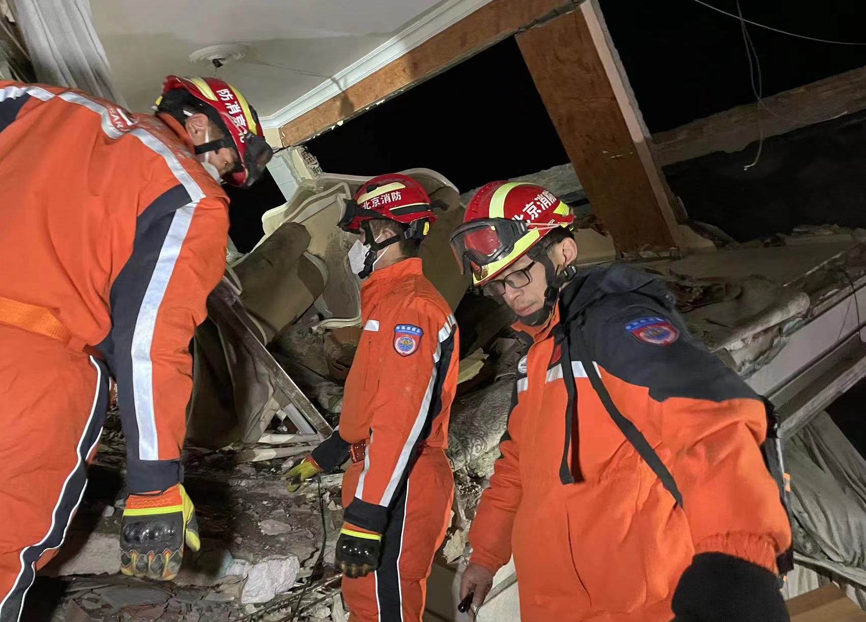 林旭川(左一)在土耳其地震救援現場