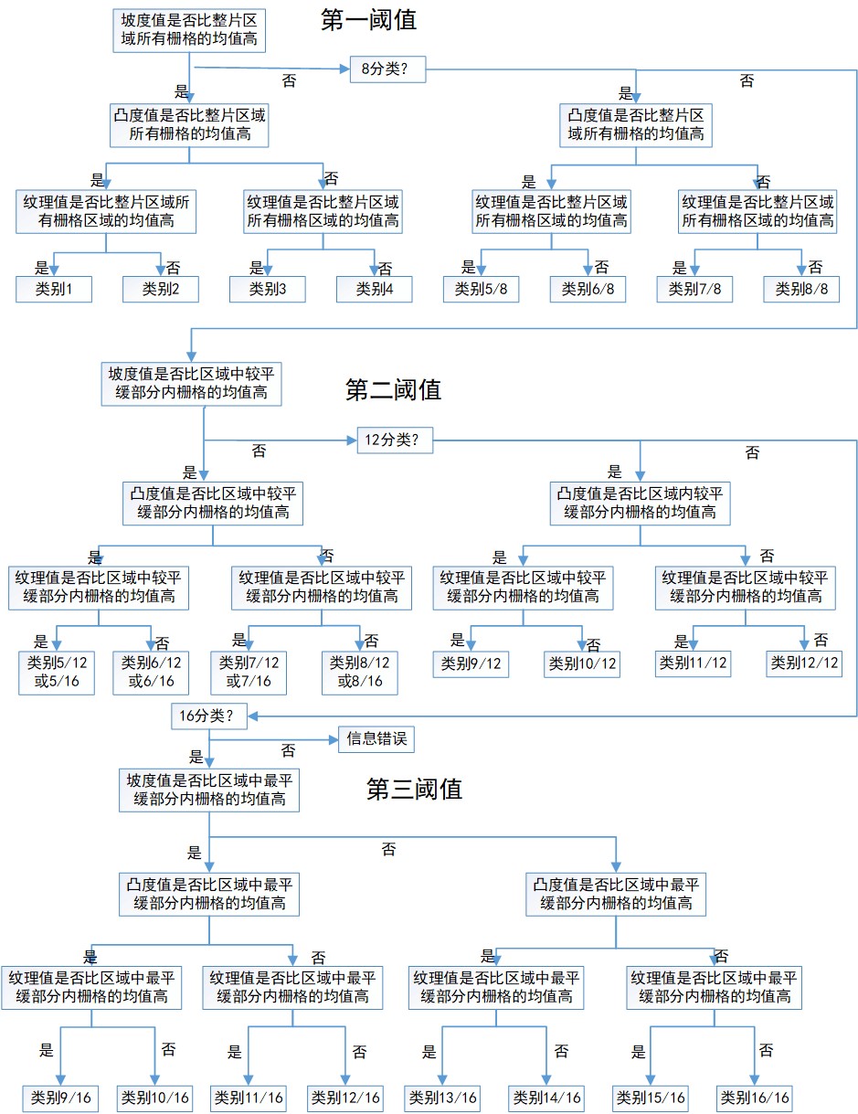 圖1 基于三項(xiàng)地形特征的場地地形類別劃分流程