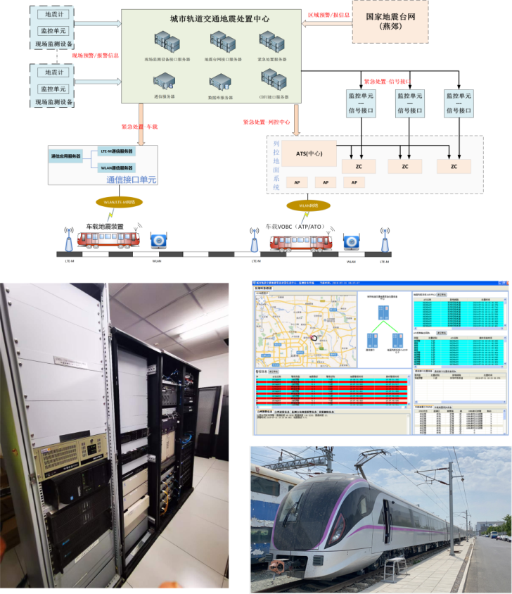 圖2 項目研發(fā)的城市軌道交通地震緊急處置系統(tǒng)及其在國家鐵道試驗中心進(jìn)行示范應(yīng)用情況