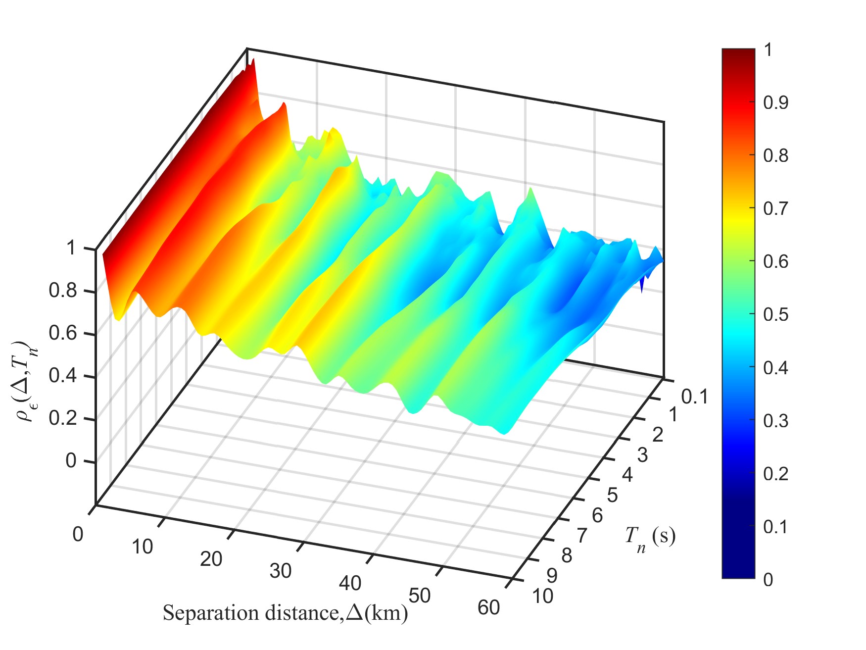 圖1 反應(yīng)譜不同周期事件間殘差、事件內(nèi)殘差和總殘差的相關(guān)性