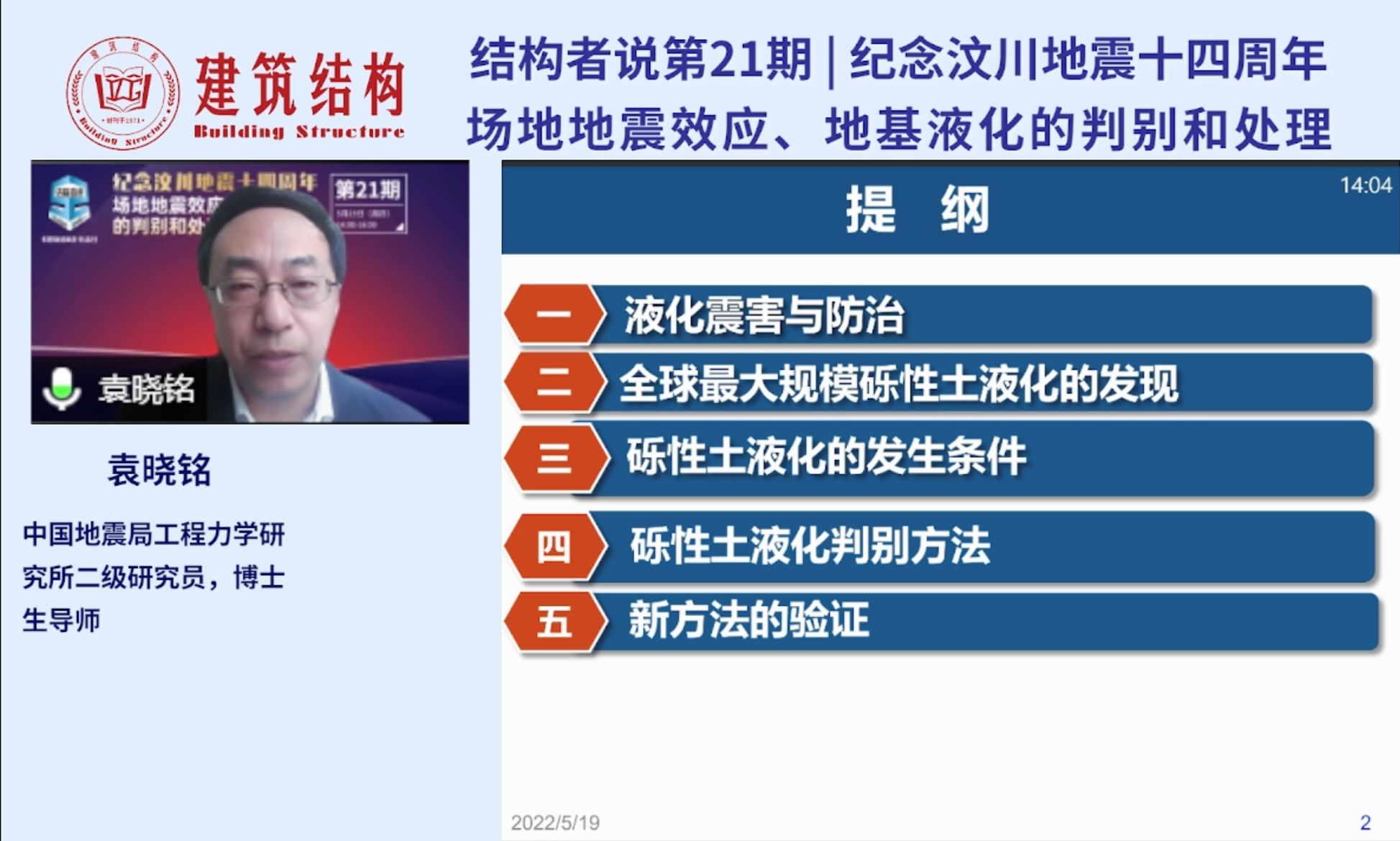 發布時間: 2022-05-24 點擊數量:4246袁曉銘研究員的報告中,介紹了2008年汶川大地震中發生的全球最大規模的礫性土液化及震害現象,解釋了礫性土液化的機理和觸發條件;介紹了具有中國特色的礫性土液化判別方法以及通過國際合作對新方法的驗證結果。報告面向一線工程技術人員,采用深入淺出的方式進行講解,受到工程技術人員的歡迎。報告后的互動提問環節,袁曉銘研究員在線回答了聽眾提出的關于“學校和醫院提高一度進行液化設防的必要性”、“礫性土和砂土液化判別方法的差別”、“不液化和不考慮液化概念的區別”等一系列問題。